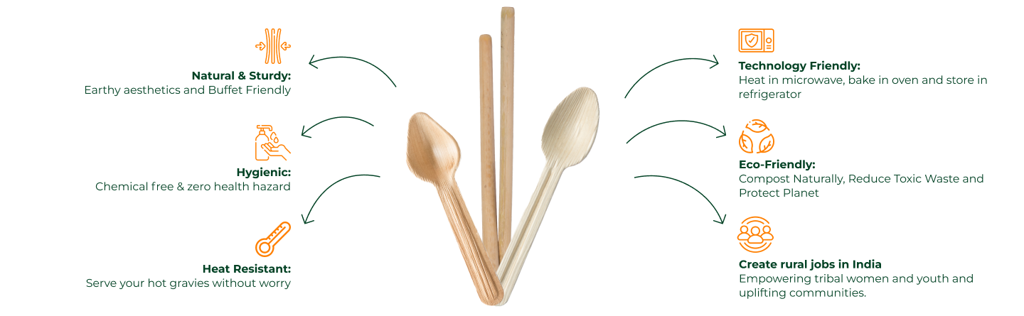Save the planet from the single use plastic cutlery. Instead use our Arecana range of cutlery. It is environment friendly and degrades naturally.